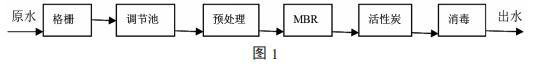 ②利用水解酸化单元中的兼性菌的作用,将水体中的 BOD5和 CODCr首先去除一部分,为后续的好氧膜处理单元降低运行负荷,改善 MBR膜处理单元的运行环境,提高 MBR膜的使用寿命,通过水解酸化池单元之后自流至膜生物处理单元,在该池内一方面通过高浓度活性污泥降解绝大部分的 BOD5和 CODCr,另一方面通过膜过滤掉细菌、胶体等很微小的物质。MBR膜出水由抽吸泵抽至中间水池中,中间水池后设置增压泵,将水加压打入活性炭过滤器中,经活性炭将水体中的色度吸附之后,清水流经消毒之后流至中水池后,最终回用到用水点。