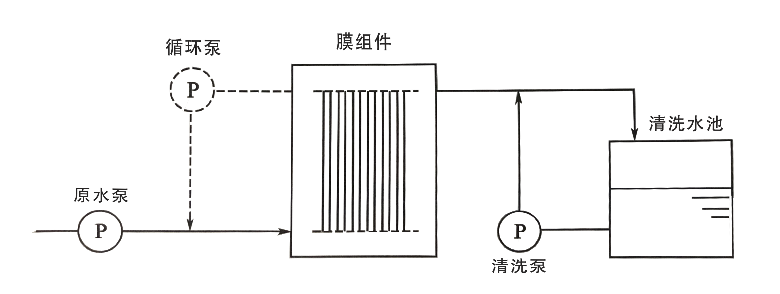 ·清洗泵、压缩机或鼓风机:将清洗用膜过滤岀水和空气送往膜组件。